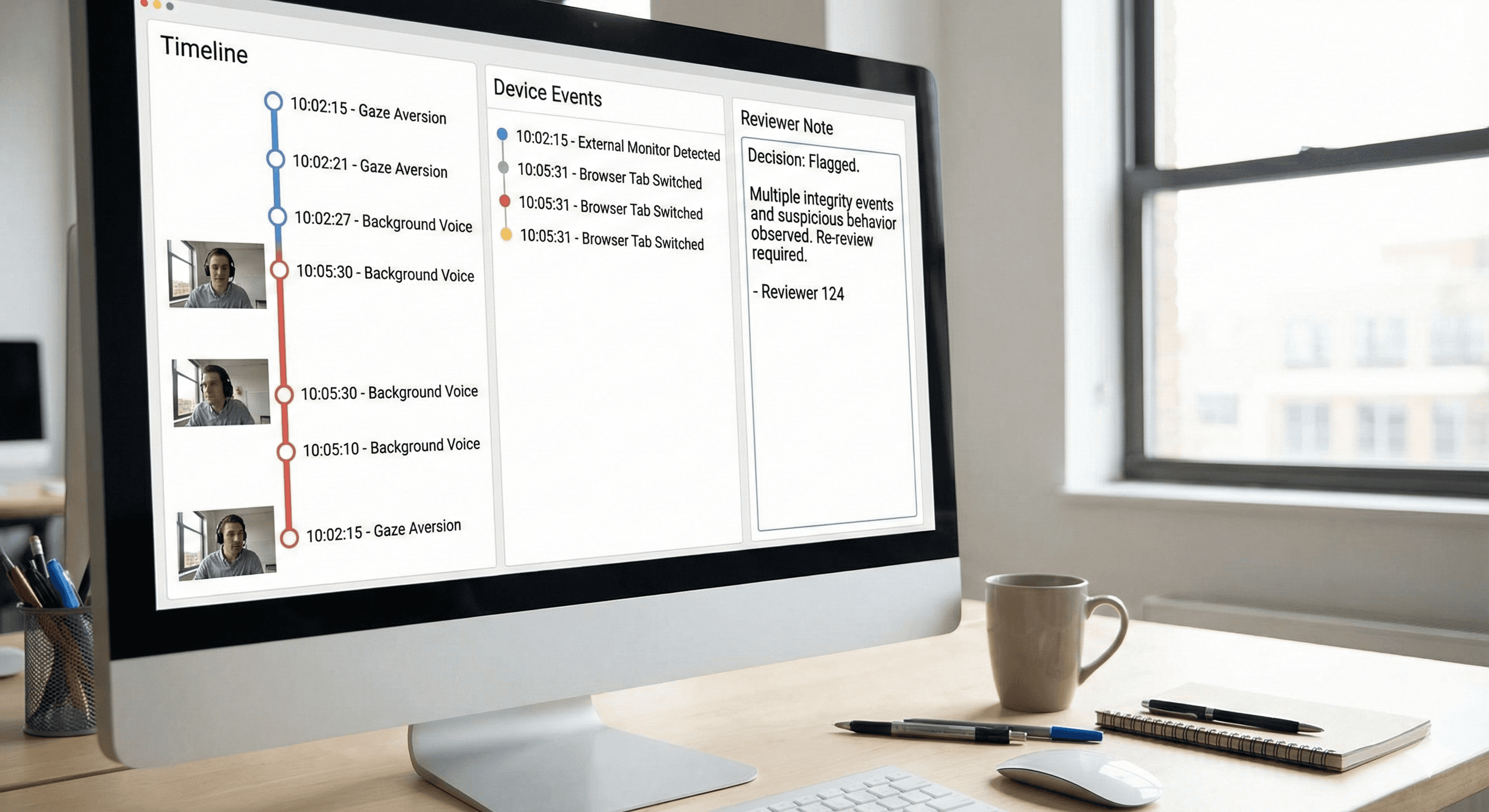 Identity checks at the entrance are necessary, but not sufficient. The control point is the exam seat. We combined document checks with biometric verification and continuity checks during the session. This reduces substitution attempts and creates a baseline for investigation.